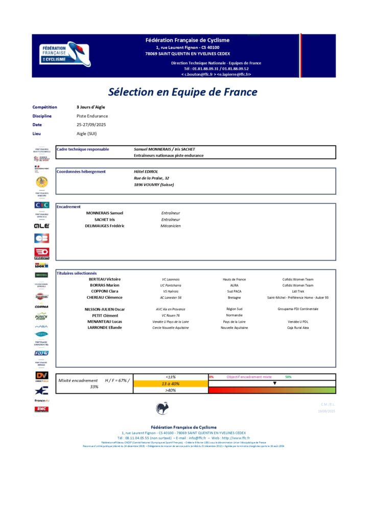 Lucas MENANTEAU (Vendée U Pays de la Loire) est sélectionné pour participer aux 3 Jours d’Aigle (SUISSE) du 25 au 27 septembre prochain.
