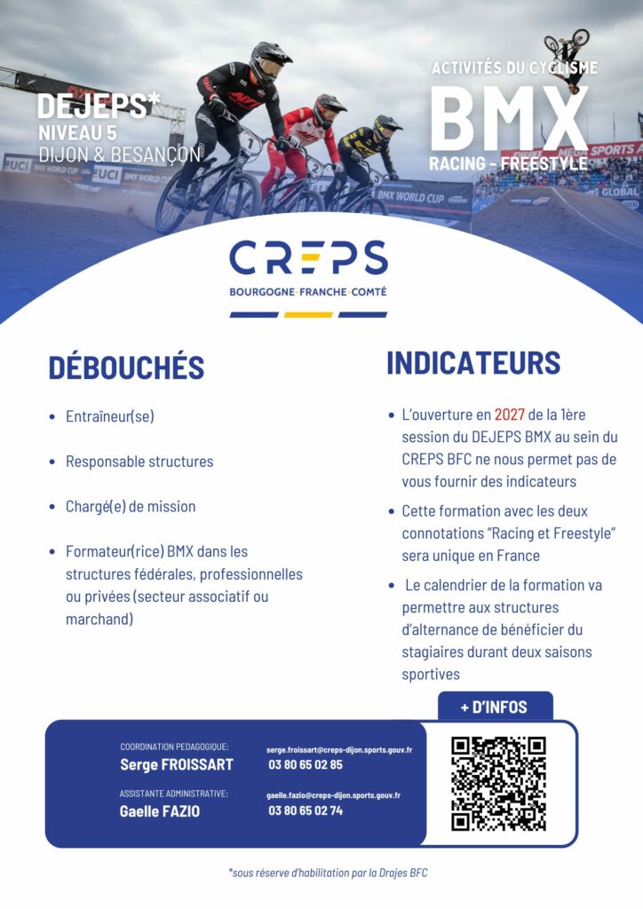 Le CREPS BFC ouvre les inscriptions pour sa toute nouvelle formation DEJEPS BMX – Perfectionnement Sportif, organisée entre Dijon et Besançon.